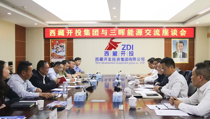 祁騰武對(duì)胡坤和鄧棟一行來(lái)訪表示歡迎,并對(duì)三暉電氣、三暉能源長(zhǎng)期以來(lái)支持西藏開投的發(fā)展與建設(shè)表示感謝。他表示,西藏?fù)碛胸S富的水力、光伏、風(fēng)能和地?zé)崆鍧嵞茉促Y源,在國(guó)家“雙碳”戰(zhàn)略目標(biāo)下,儲(chǔ)能事業(yè)能有效提升清潔能源資源利用率和傳輸平穩(wěn)度,有效調(diào)節(jié)電力供應(yīng)結(jié)構(gòu)性不平衡問題,發(fā)展?jié)摿薮?。西藏開投作為西藏自治區(qū)唯一的清潔能源產(chǎn)業(yè)集團(tuán),根植西藏綠色能源、清潔能源開發(fā)利用領(lǐng)域多年,始終致力于推進(jìn)“一基地兩示范”建設(shè)。希望雙方加強(qiáng)溝通交流,發(fā)揮自身優(yōu)勢(shì),以市場(chǎng)為導(dǎo)向,積極拓展多領(lǐng)域、全方位合作機(jī)會(huì),創(chuàng)新合作模式參與西藏清潔能源發(fā)展建設(shè),提升市場(chǎng)競(jìng)爭(zhēng)力,讓雙向奔赴變雙向成就,樹立國(guó)有企業(yè)和民營(yíng)企業(yè)合作典范,推動(dòng)西藏清潔能源產(chǎn)業(yè)高質(zhì)量發(fā)展邁上新臺(tái)階。