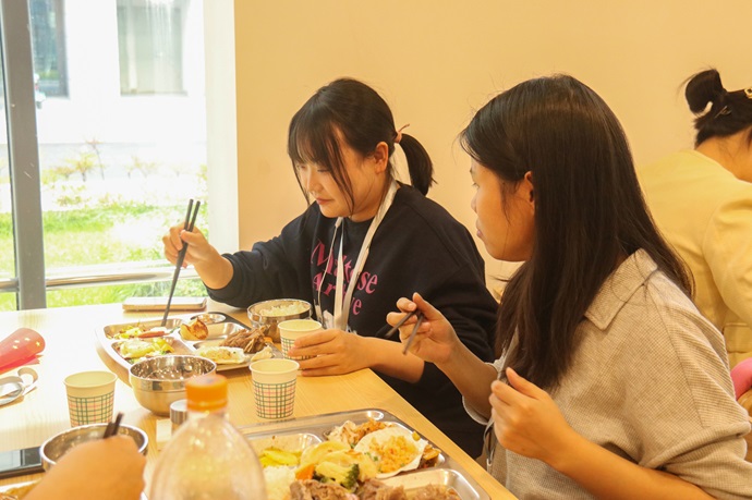 干部職工和家屬們團(tuán)聚在一起就餐。周田 攝