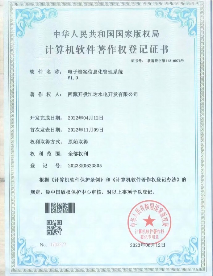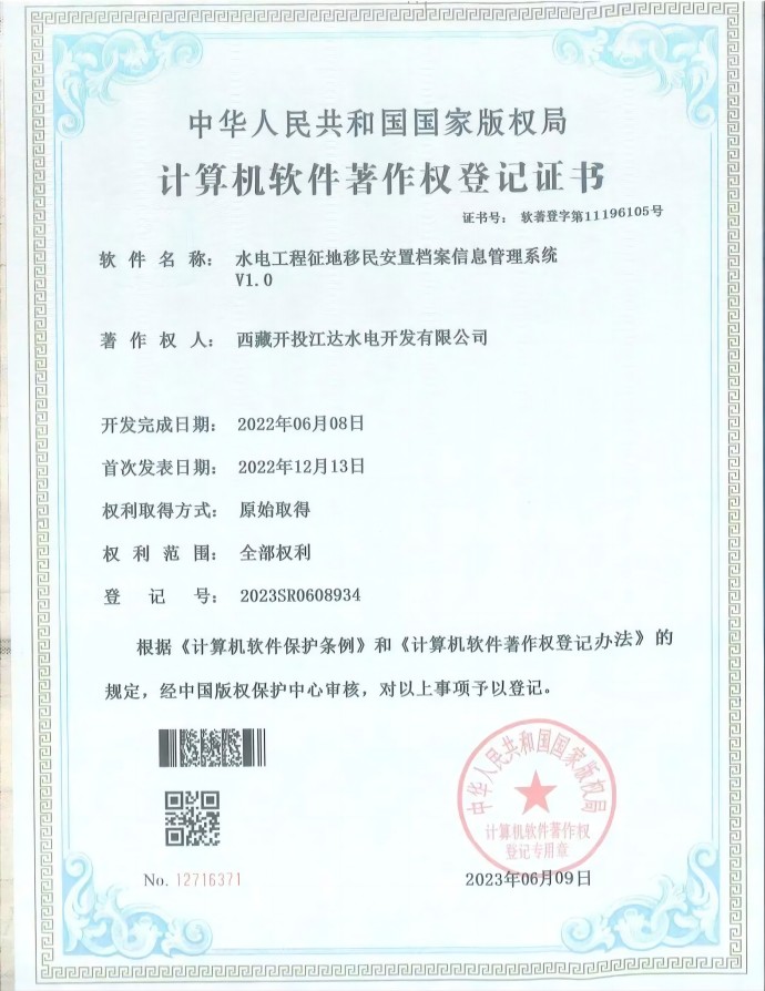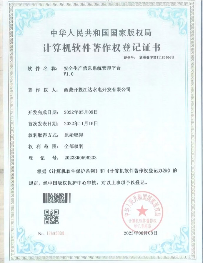 近日,經(jīng)中國版權(quán)保護(hù)中心審核,集團(tuán)公司所屬項目公司申報的三項軟件著作權(quán)符合《計算機(jī)軟件保護(hù)條例》和《計算機(jī)軟件著作權(quán)登記辦法》的相關(guān)規(guī)定,被正式授予計算機(jī)軟件著作權(quán)登記證書。本次取得證書的3項軟件分別是“安全生產(chǎn)信息系統(tǒng)管理平臺V1.0”“電子檔案信息化管理系統(tǒng)V1.0”“水電工程征地移民安置檔案信息管理系統(tǒng)V1.0”。