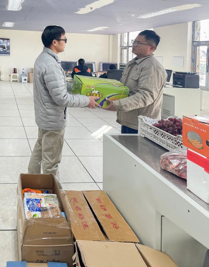 在2023年新春佳節(jié)來臨之際,金河水電公司工會到吉昌光伏及瓦托水電廠看望慰問新春佳節(jié)仍堅持奮戰(zhàn)在生產(chǎn)一線的干部職工,并送上新春祝福與慰問品。