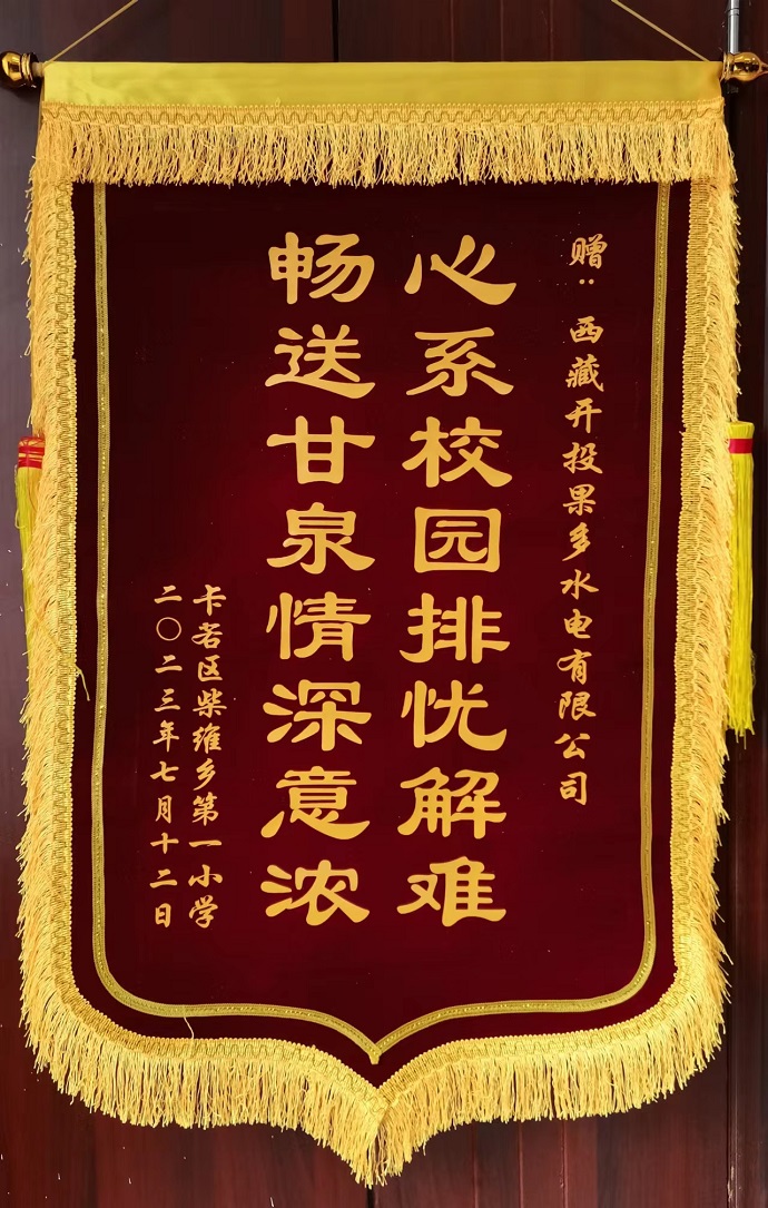 捐贈現(xiàn)場,果多水電公司董事長、總經(jīng)理宋亞東與校長李松林親切交流,了解孩子們學(xué)習(xí)、生活情況,鼓勵孩子們要好好學(xué)習(xí),保持樂觀向上的心態(tài),健康快樂成長。作為受助方,李松林向果多水電公司贈送“心系校園排憂解難 暢送甘泉情深意濃”錦旗以表謝意。他表示,愛心無價(jià),情誼永恒,全校師生將把這份關(guān)愛化作砥礪前行的動力,努力提高柴維鄉(xiāng)教育教學(xué)質(zhì)量,培養(yǎng)出德、智、體、美、勞全面發(fā)展的新時(shí)代好少年。
