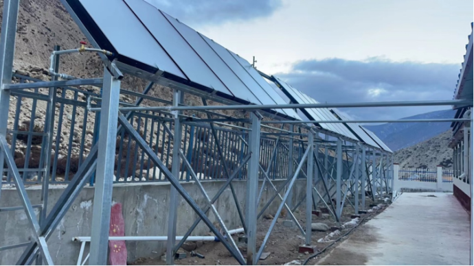 日喀則市定日縣曲當(dāng)鄉(xiāng)德吉村、優(yōu)帕村、嚴(yán)曲村位于珠穆朗瑪峰自然保護(hù)區(qū)核心區(qū),均為定日縣偏遠(yuǎn)邊境鄉(xiāng)村。項(xiàng)目供暖總面積為593.39m2,包括太陽(yáng)能集熱器系統(tǒng)、輔助熱源(空氣源熱泵),儲(chǔ)熱系統(tǒng)、末端設(shè)施,光伏發(fā)電系統(tǒng),建筑節(jié)能改造等內(nèi)容。在日喀則市發(fā)改委的領(lǐng)導(dǎo)下,南亞公司(西藏開(kāi)投下屬二級(jí)公司)以人為本、科學(xué)管理、精心組織,克服設(shè)備運(yùn)輸艱難、人員組織困難、施工機(jī)械短缺、項(xiàng)目工期緊張等種種困難,如期實(shí)現(xiàn)了項(xiàng)目投產(chǎn)。同時(shí),為評(píng)估和提升項(xiàng)目效能,配套了PLC自控柜,對(duì)供暖數(shù)據(jù)進(jìn)行遠(yuǎn)程收集及數(shù)據(jù)分析。在本項(xiàng)目運(yùn)行一個(gè)采暖期后,將對(duì)項(xiàng)目的規(guī)模效益、財(cái)務(wù)效益、綜合效益進(jìn)行綜合評(píng)價(jià),并對(duì)清潔能源供暖方式替代傳統(tǒng)燃料的減碳效果進(jìn)行科學(xué)分析,確保形成村居供暖工程可靠性好、性?xún)r(jià)比高、適宜推廣的決策方案,為全面復(fù)制推廣實(shí)施全區(qū)農(nóng)牧區(qū)清潔供暖供熱項(xiàng)目做出貢獻(xiàn)。