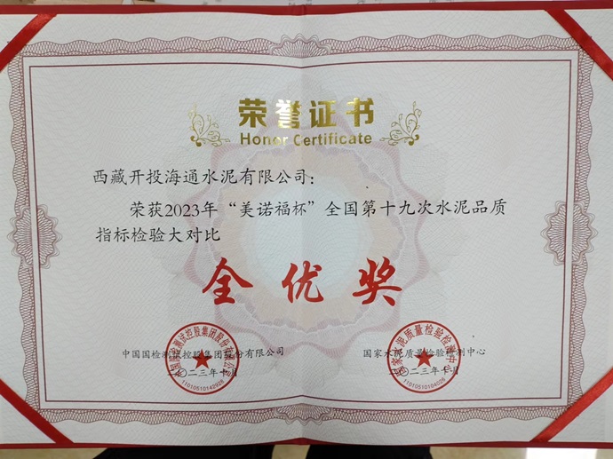 西藏開投海通水泥公司喜獲全國水泥檢驗大對比“全優(yōu)獎”