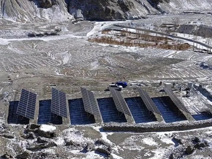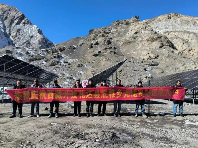 據了解,該示范項目位于阿里地區(qū)扎達縣底雅鄉(xiāng)魯巴村,地處偏遠的邊境區(qū)域,海拔3869米,基礎設施建設非常薄弱,無市電供應。之前村民用電主要依靠小型光伏戶用電源設備,僅能滿足日常照明及通訊設備的充電,電力保障能力十分有限。該項目工期緊張,建設者們克服高寒高海拔、設備采購困難、人員組織困難、大雪封路等重重困難,在短短的2個月內完成光伏、儲能、變電場區(qū)施工安裝,和輸電線路架設及系統(tǒng)發(fā)電調試工作,在春節(jié)藏歷新年前順利實現(xiàn)投運。目前,該項目在光照充足條件下可做到24小時無間斷運行供電,保障了當?shù)卮迕袢旌蛴秒娦枨蟆?/div>