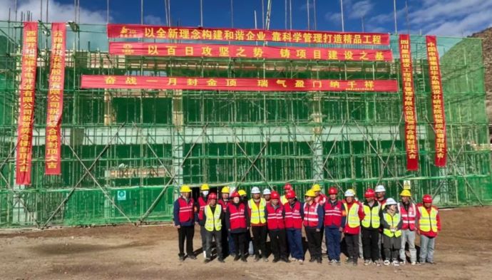 項(xiàng)目綜合樓封頂儀式現(xiàn)場(chǎng)。尼珍 攝