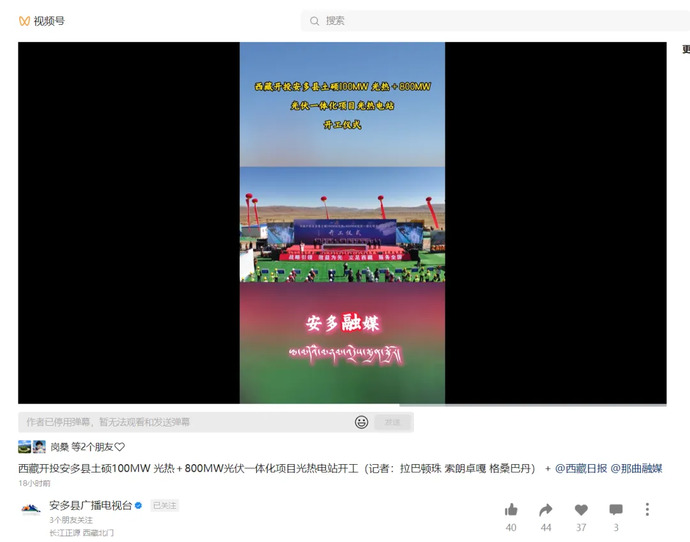 6月10日,全球海拔最高、西藏首個塔式光熱項目——西藏開投安多土碩100MW光熱電站正式開工建設的消息,被人民網(wǎng)、新華網(wǎng)、央視、光明日報、經(jīng)濟日報、科技日報、中國新聞網(wǎng)、中國西藏網(wǎng)、中國發(fā)展網(wǎng)、西藏發(fā)布、西藏日報、西藏廣播電視臺、西藏商報、安多縣廣播電視臺等各級媒體平臺宣傳報道,有力提升了集團品牌影響力和產(chǎn)業(yè)發(fā)展的傳播力。
