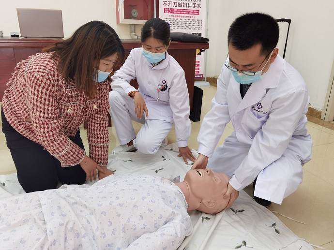 (模擬心肺復(fù)蘇練習(xí) 譚玲攝)