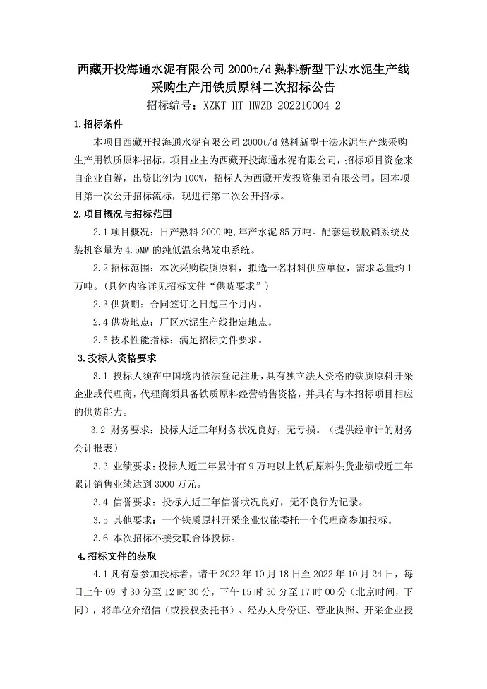 采購生產用鐵質原料二次招標公告