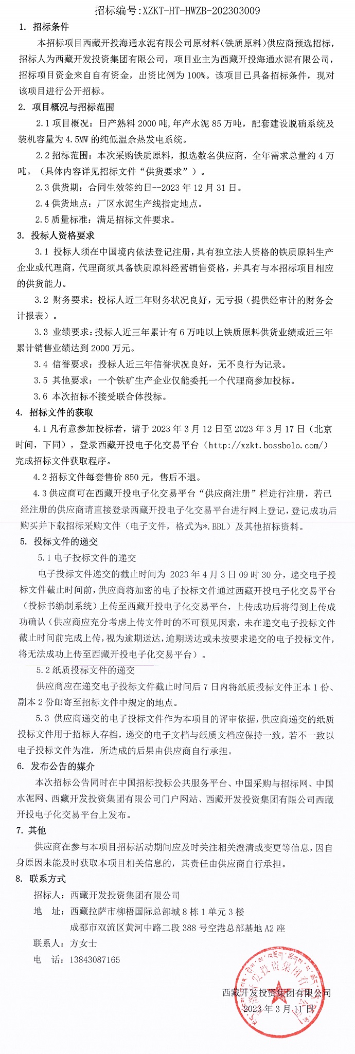 西藏開投海通水泥有限公司原材料(鐵質原料)