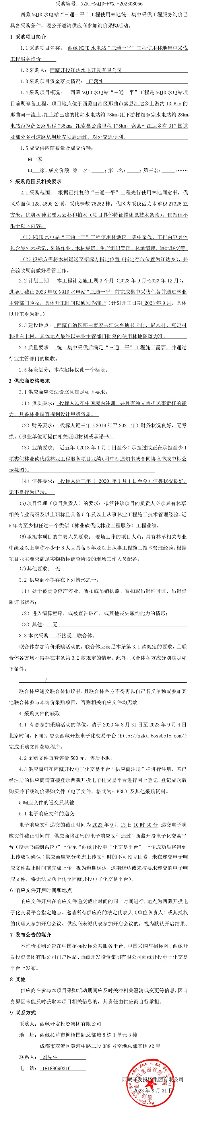 西藏NQJD水電站“三通一平”工程使用林地統(tǒng)一集中采伐工程服務(wù)詢價(jià)采購(gòu)公告