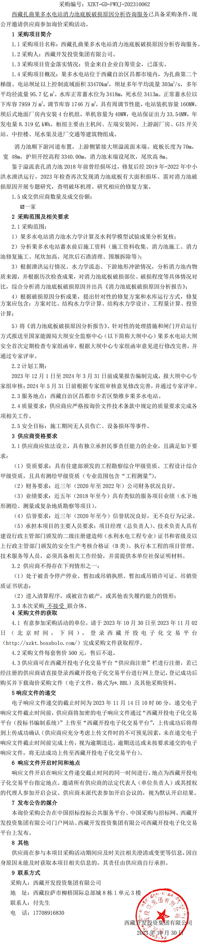 西藏扎曲果多水電站消力池底板破損原因分析咨詢服務(wù)詢價(jià)采購公告