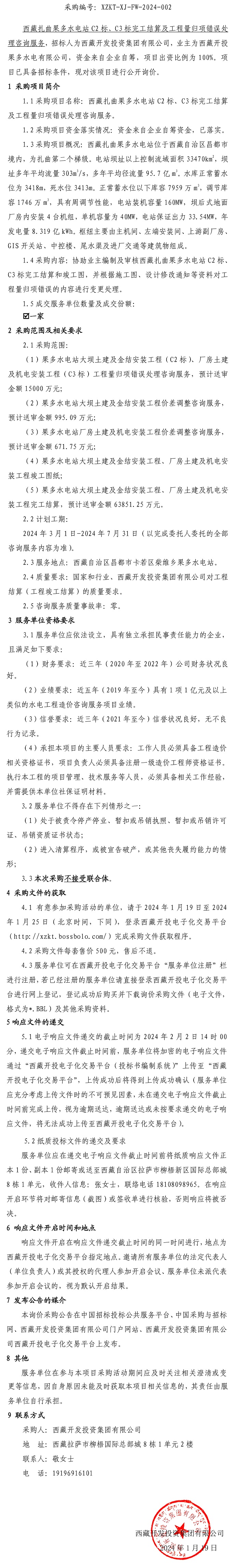 西藏扎曲果多水電站 C2 標、C3 標完工結算及工程量歸項錯誤處理咨詢服務詢價采購公告