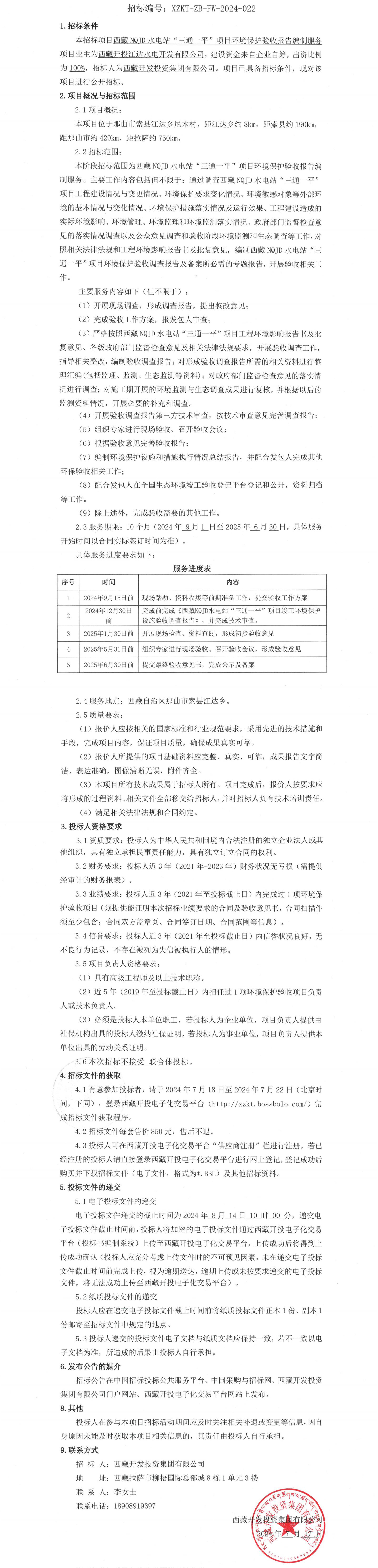 西藏NQJD水電站“三通一平”項(xiàng)目環(huán)境保護(hù)驗(yàn)收?qǐng)?bào)告編制服務(wù)招標(biāo)公告