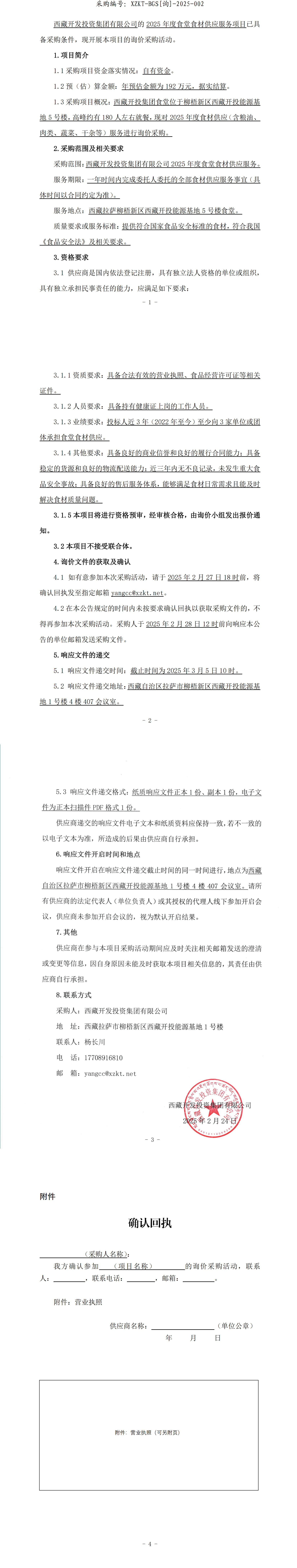 西藏開發(fā)投資集團有限公司2025年度食堂食材供應服務詢價采購公告